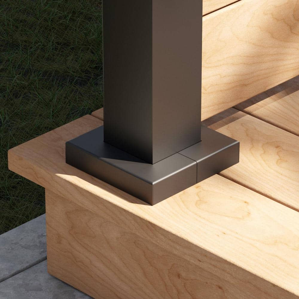 Enhance your HOFT fence and railing posts with the HOFT Base Plate Cover, crafted from durable black powder-coated steel. This weather-resistant cover is designed to fit seamlessly over 3 in. x 3 in. posts, offering easy assembly and a sleek finish.