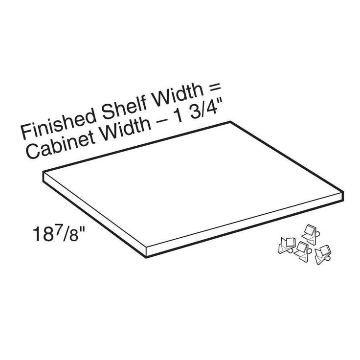 This full depth adjustable shelf kit includes a 3/4 in. thick shelf panel and 4 clear plastic locking shelf rests. The shelf is sized to fit a 18 in. wide x 21 in. deep Home Decorators Collection vanity base cabinet. The furniture grade plywood is CARB compliant for your peace of mind.