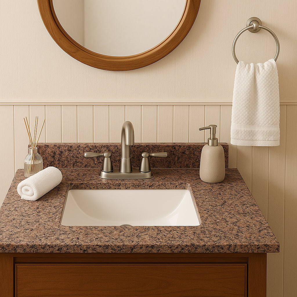 Upgrade your bathroom today with this elegant and durable granite vanity top.