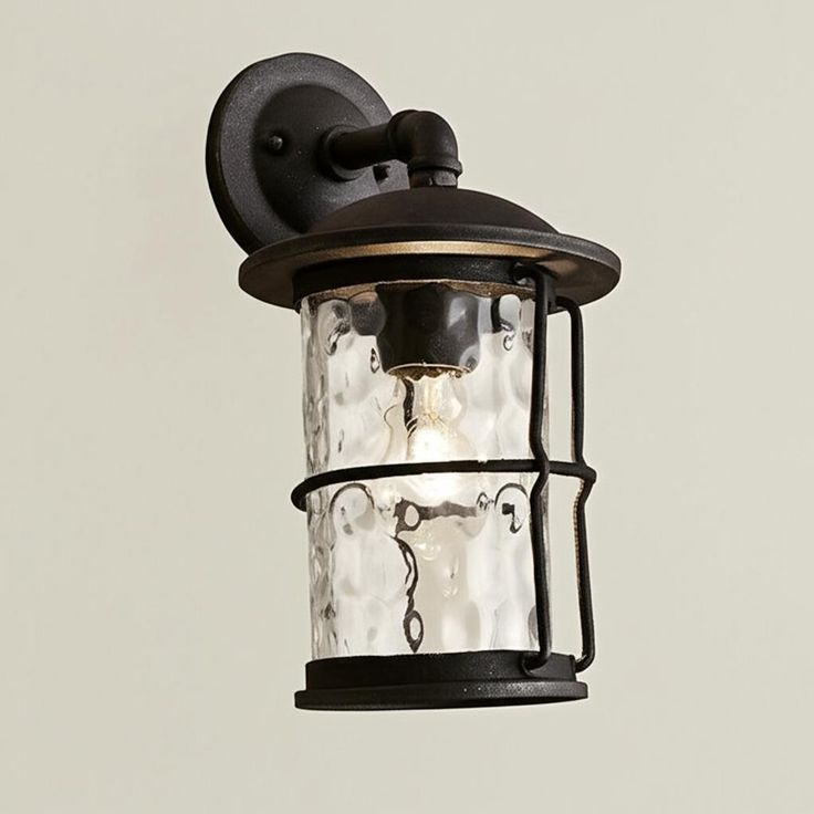 Transform your outdoor spaces with this exquisite wall lantern. The gilded iron finish and water glass shade create a captivating interplay of light and texture, adding a touch of rustic charm to any exterior. Pair it with a wooden door or brick wall for a harmonious aesthetic. This lantern is not just a light fixture; it's a statement piece that elevates your home's curb appeal.