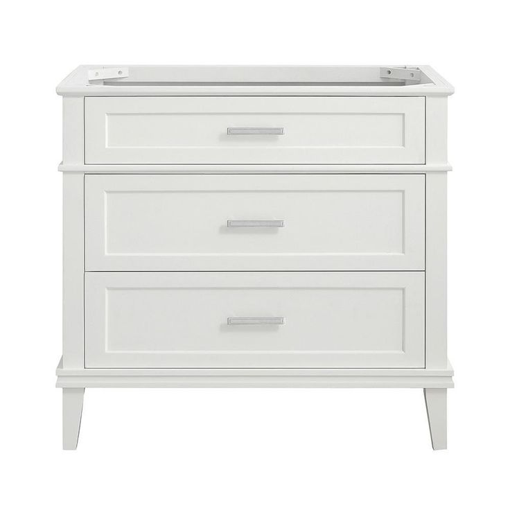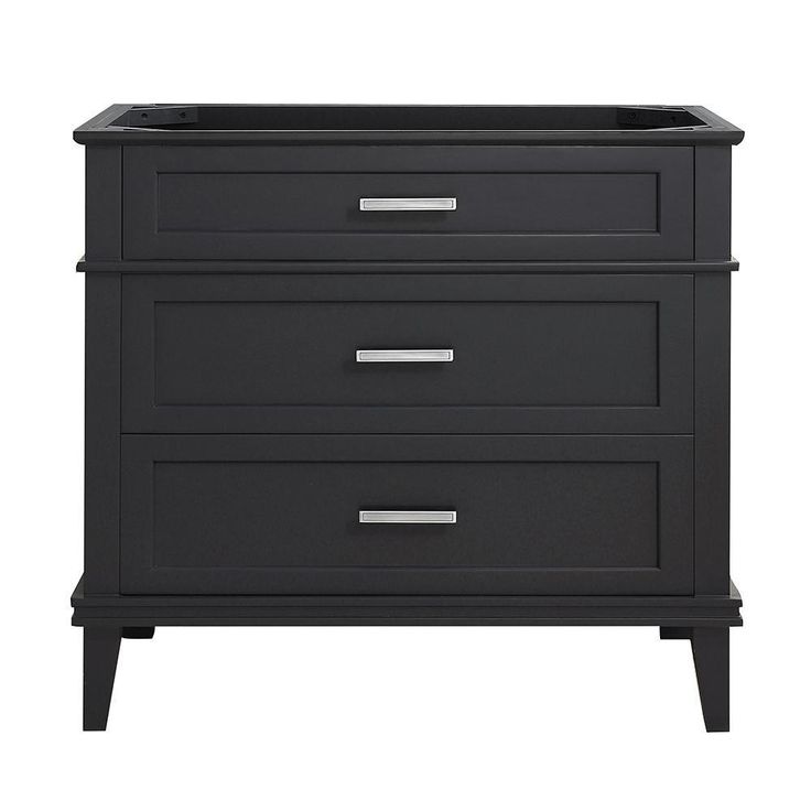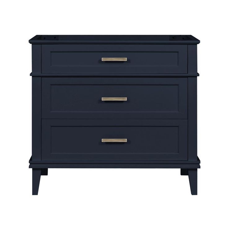 Create your own custom vanity with the timeless style of the three drawer Woodfall 36 in. bathroom vanity base by Home Decorator's Collection. Its jaunty midnight blue finish and classic good looks lends itself to a wide variety of countertop styles, sink designs and faucet hardware. Pair with the Woodfall bath vanity mirror for a picture-perfect set.