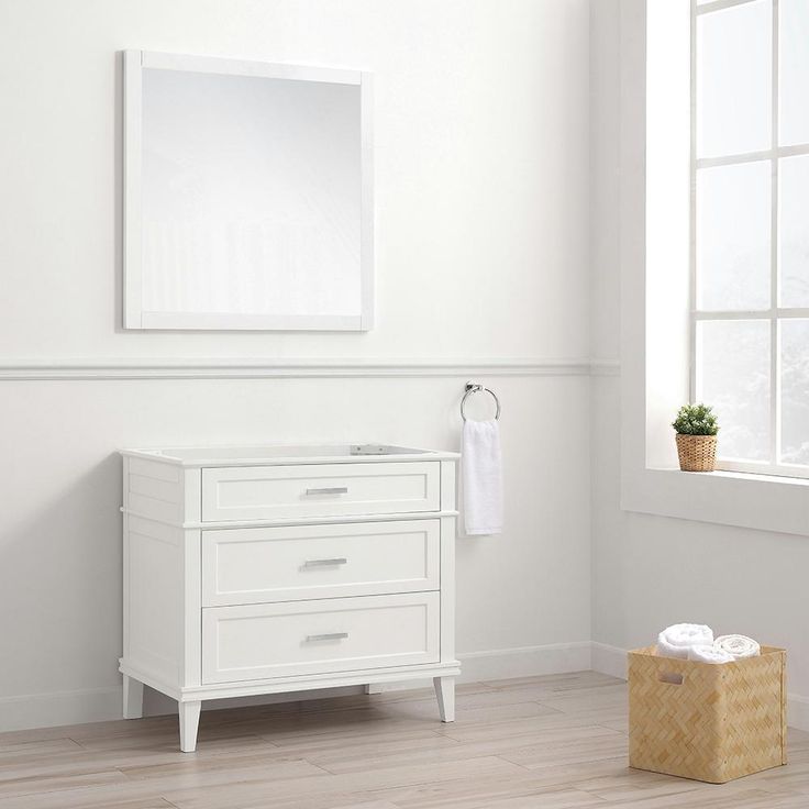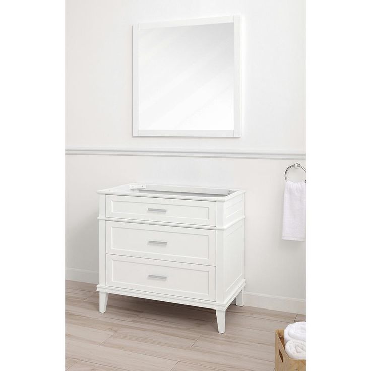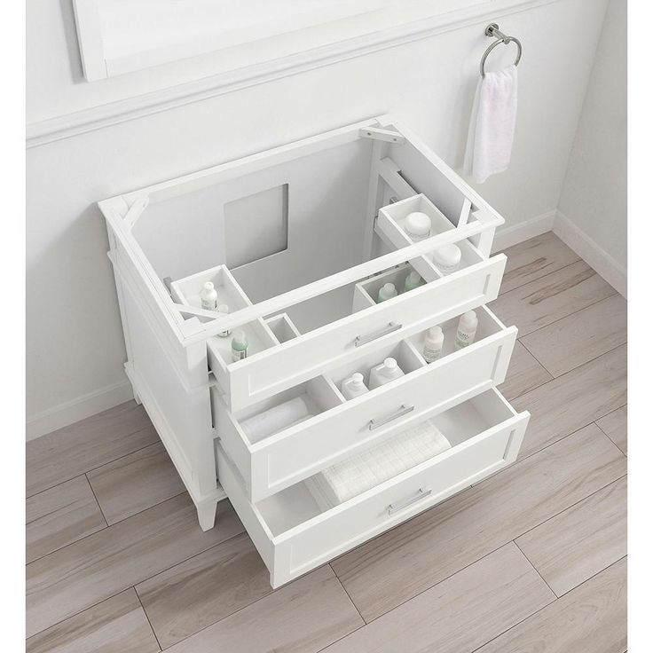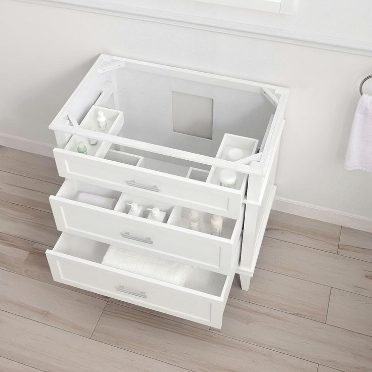Create your own custom vanity with the timeless style of the three drawer Woodfall 36 in. bathroom vanity base by Home Decorator's Collection. Its elegant white finish and classic good looks lends itself to a wide variety of countertop styles, sink designs and faucet hardware. Pair with the Woodfall bath vanity mirror for a picture-perfect set.