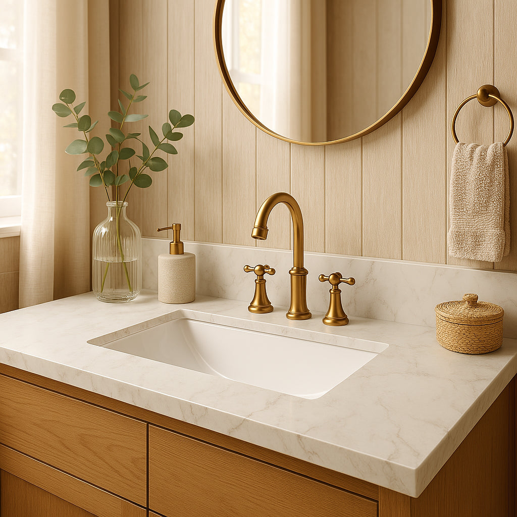 - Durable Engineered Stone Composite: Provides a natural stone look with enhanced wear and stain resistance.