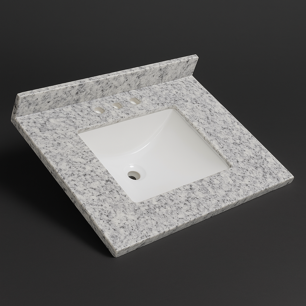 A: The vanity top is ready for installation using silicone caulking, which is not included.
