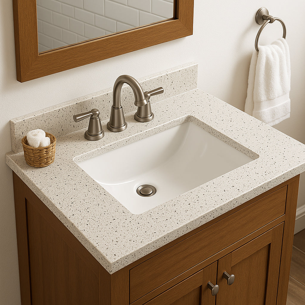 Upgrade your bathroom with the Silver Ash Vanity Top for a blend of elegance and practicality.