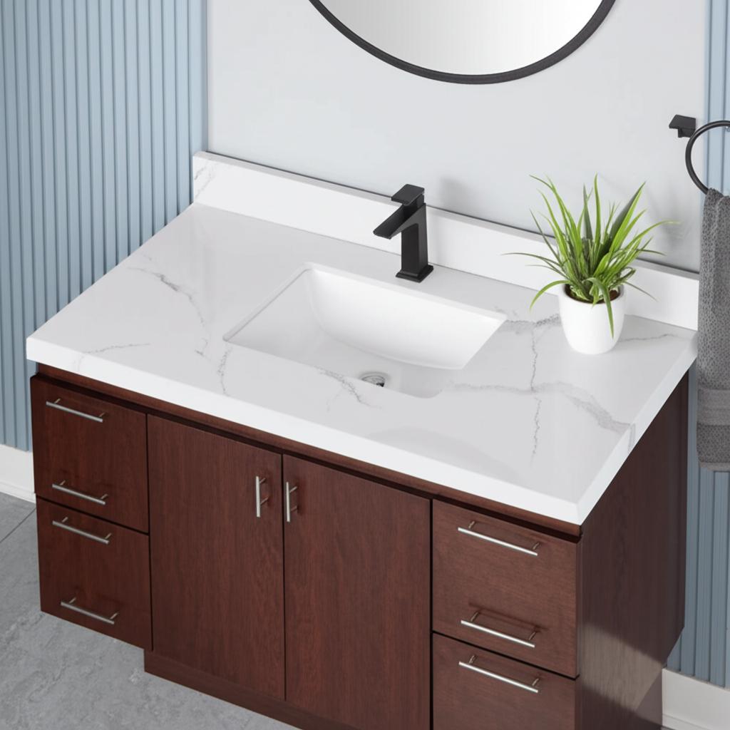 Upgrade your bathroom with this elegant and durable vanity top today!