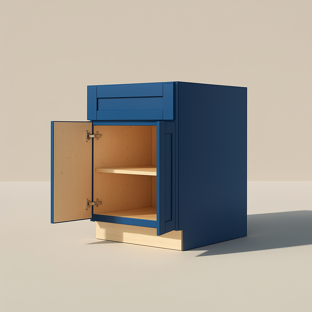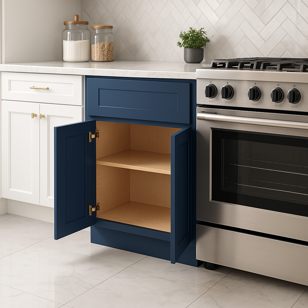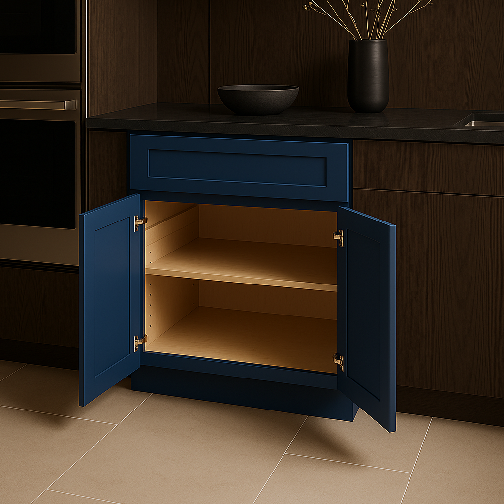 The Washington Vessel Blue Shaker Base Kitchen Cabinet combines modern design with durable construction. Featuring a striking blue finish, soft-close functionality, and CARB II compliant materials, it offers both style and practicality for your kitchen.