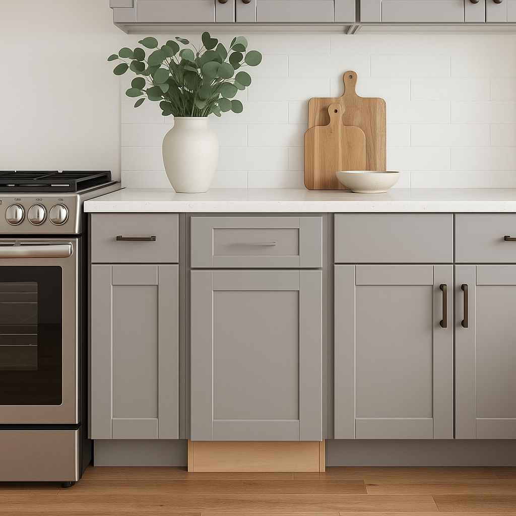 Upgrade your kitchen today with the Washington Veiled Gray Shaker Base Cabinet for a blend of style and functionality.