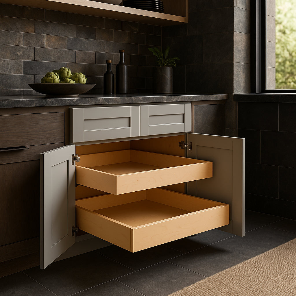 | Kitchen Cabinet Features | Finished Interior, Full Depth Shelves, Full Extension Drawers, Modular, Moisture Resistant, Soft Close Doors, Soft Close Drawers, Solid Wood, Structural Toe Kicks Included |