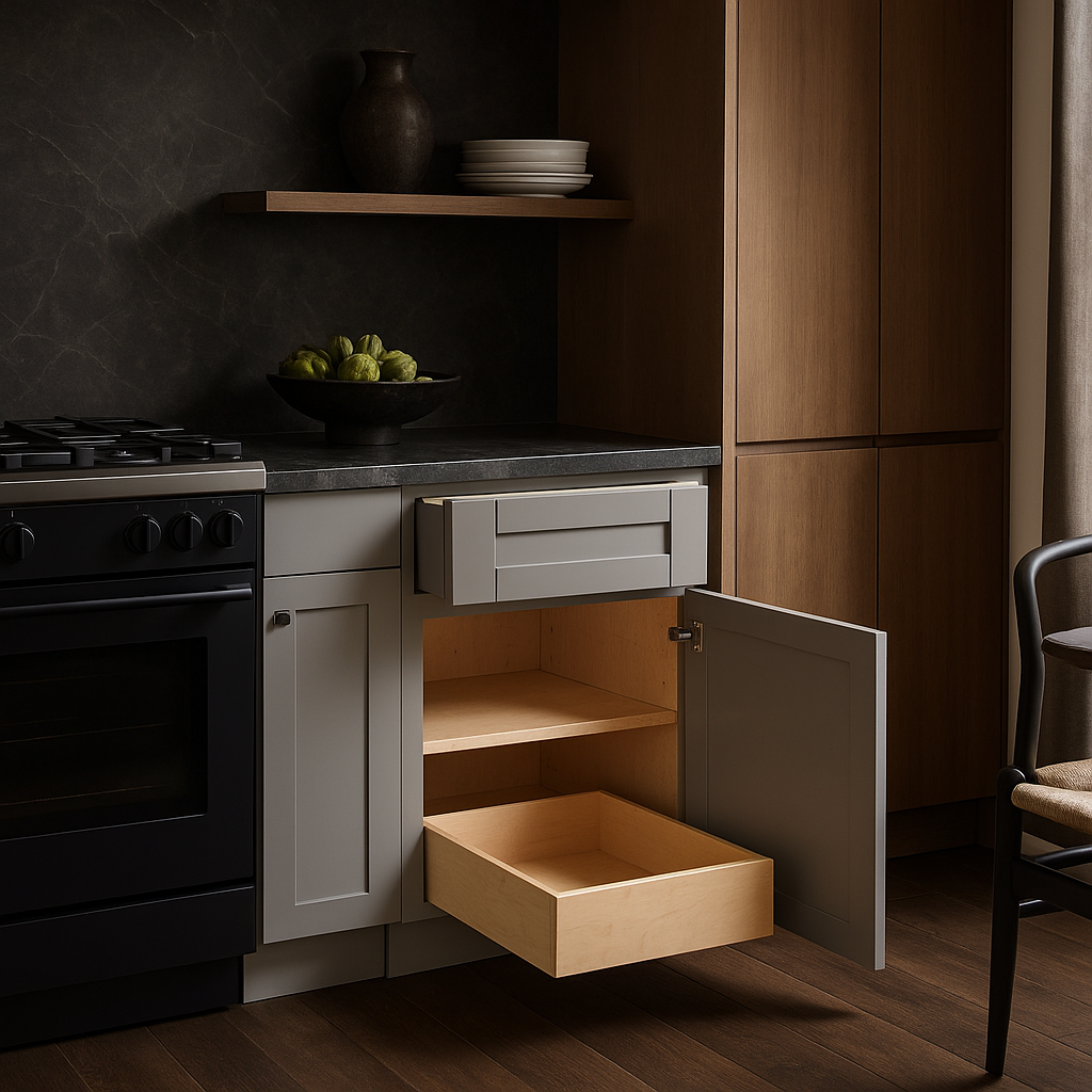 | Kitchen Cabinet Features | Finished Interior, Full Depth Shelves, Full Extension Drawers, Modular, Moisture Resistant, Soft Close Doors, Soft Close Drawers, Solid Wood, Structural Toe Kicks Included |