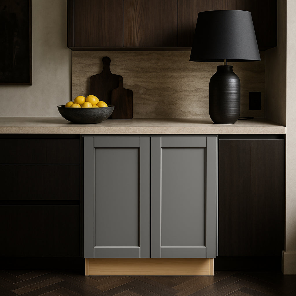 The Washington Veiled Gray Base Cabinet by Home Decorators Collection combines sleek Shaker-style design with durable CARB II compliant plywood construction. Featuring soft-close doors and adjustable shelves, it offers both elegance and practicality for modern kitchens.
