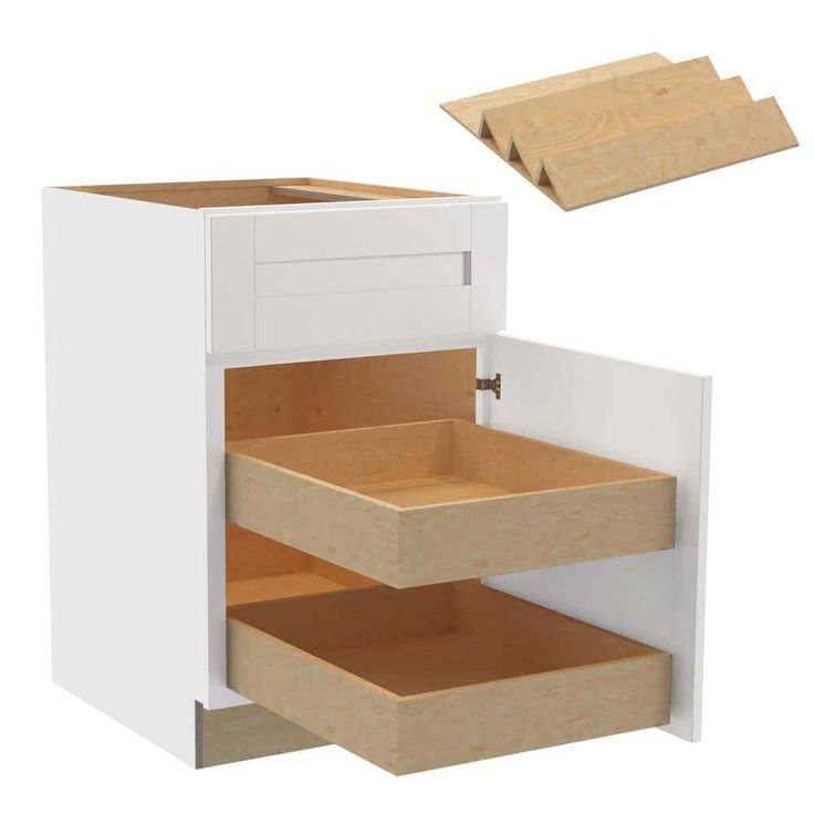 - Storage: Includes two full-depth shelves and two soft-close rollout trays for organized storage solutions.