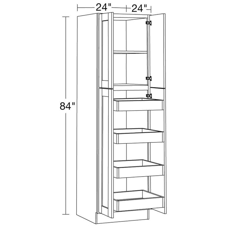 Home Decorators Collection Washington Vesper White Plywood Shaker Assembled Utility Pantry Kitchen Cabinet 4 ROT Sft Cl 24 in W x 24 in D x 84 in H
