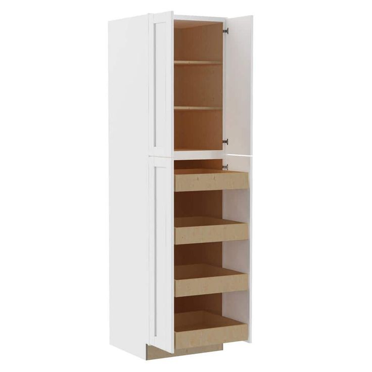 Home Decorators Collection Washington Vesper White Plywood Shaker Assembled Utility Pantry Kitchen Cabinet 4 ROT Sft Cl 24 in W x 24 in D x 96 in H