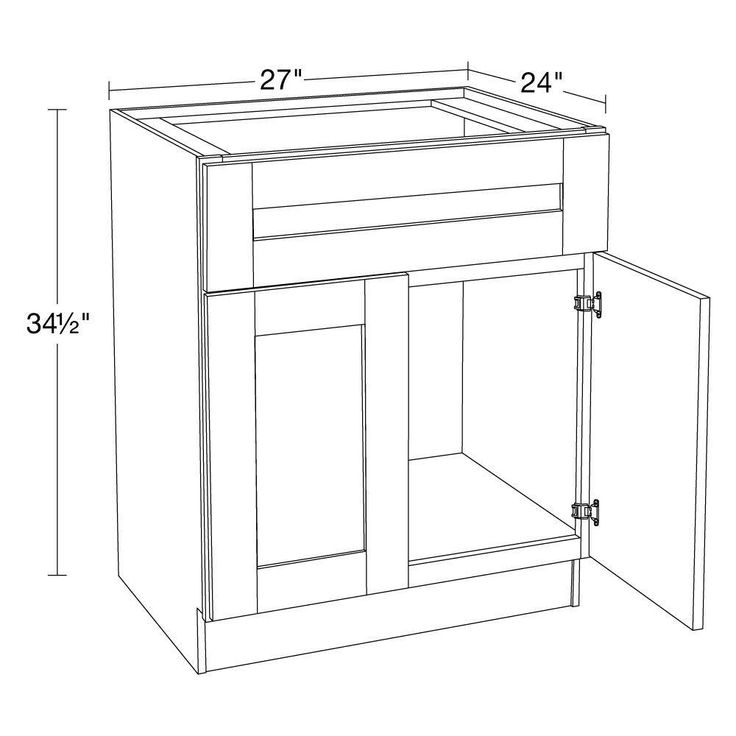 Home Decorators Collection Washington Vesper White Plywood Shaker Assembled Vanity Sink Base Kitchen Cabinet Sft Cls 27 in W x 24 in D x 34.5 in H