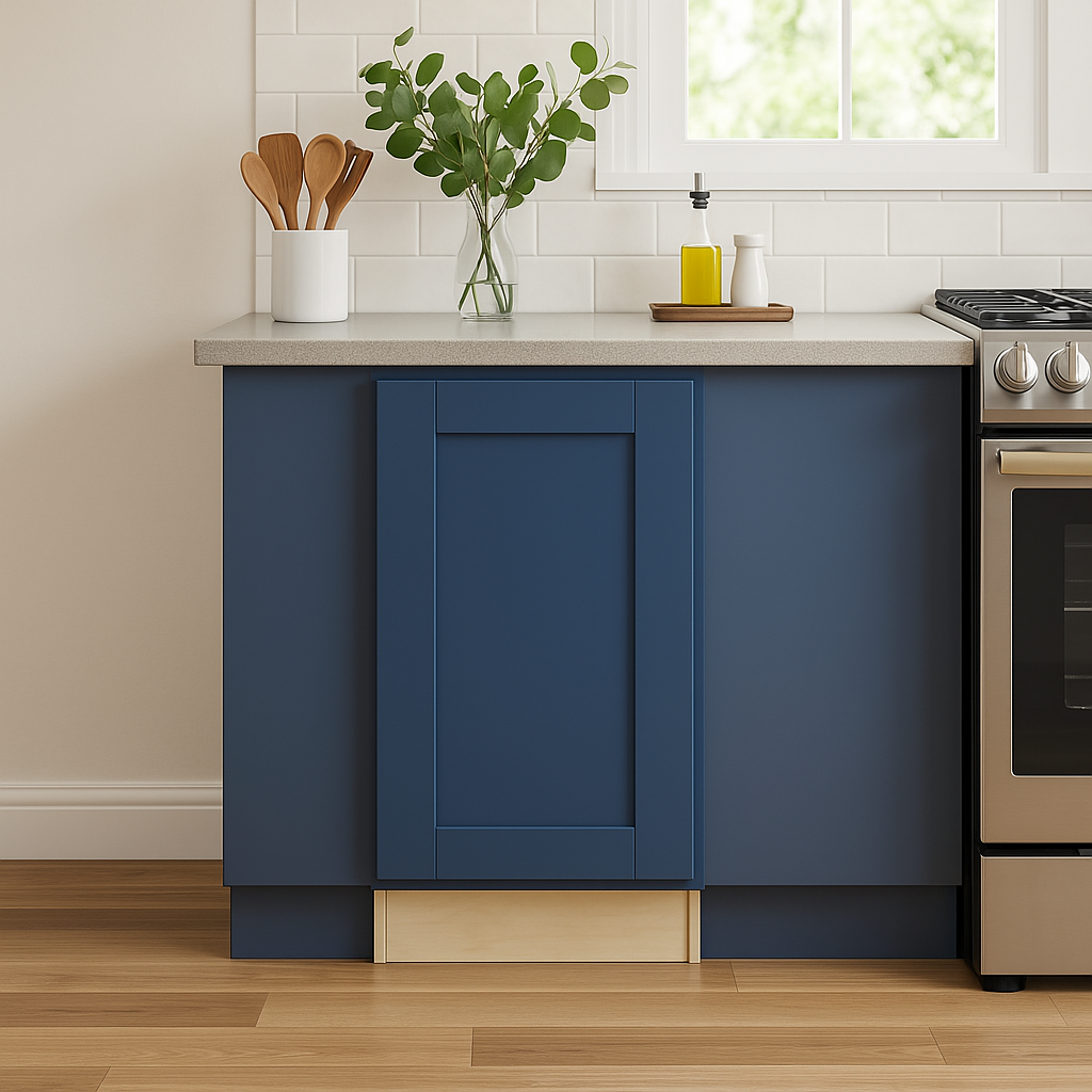 The Washington Vessel Blue Shaker Kitchen Base Cabinet by Home Decorators Collection combines modern design and functionality. Featuring a striking vessel blue finish, soft-close doors, and CARB II compliant plywood construction, this cabinet is both stylish and durable.