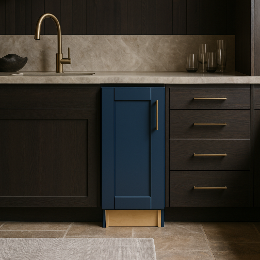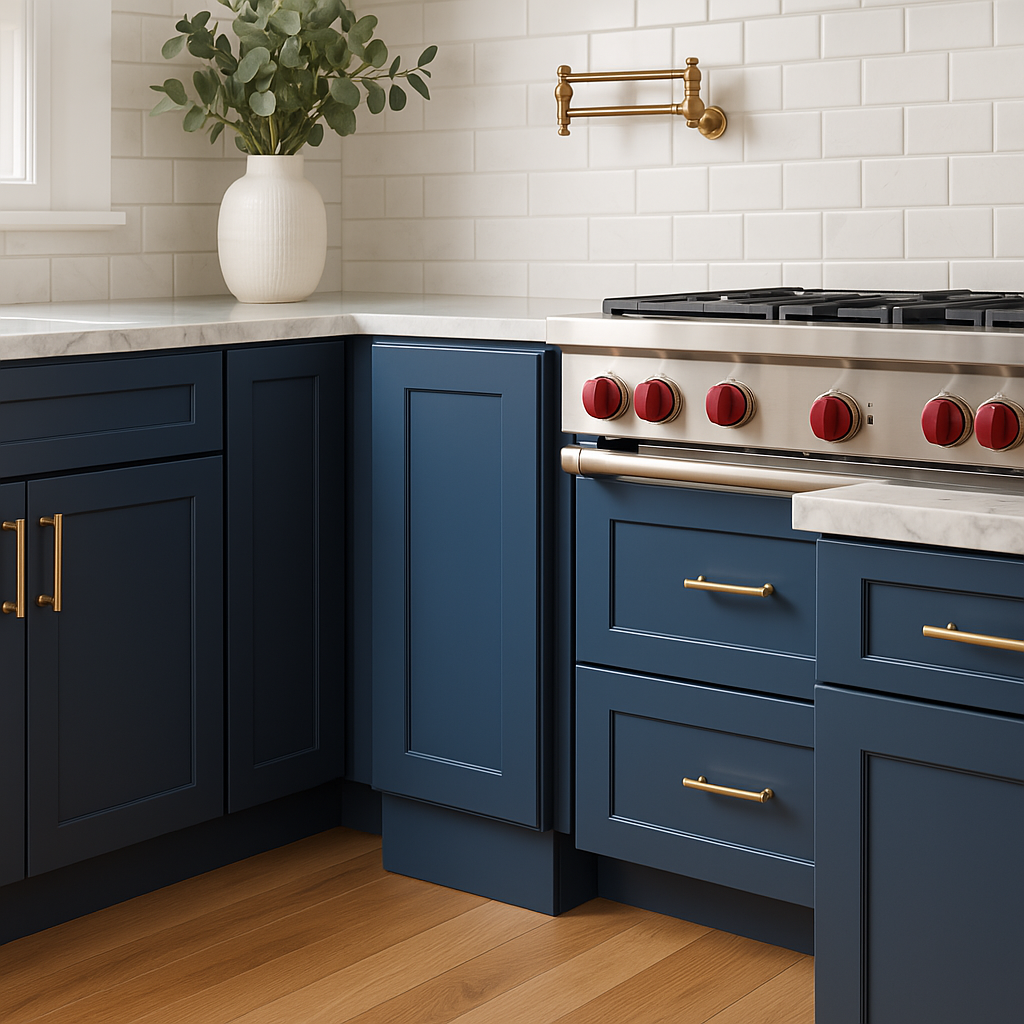 The Washington Vessel Blue Shaker Kitchen Cabinet combines modern design with durable construction. Featuring a striking blue finish, soft close doors, and CARB II compliant plywood, this cabinet is perfect for contemporary kitchens.