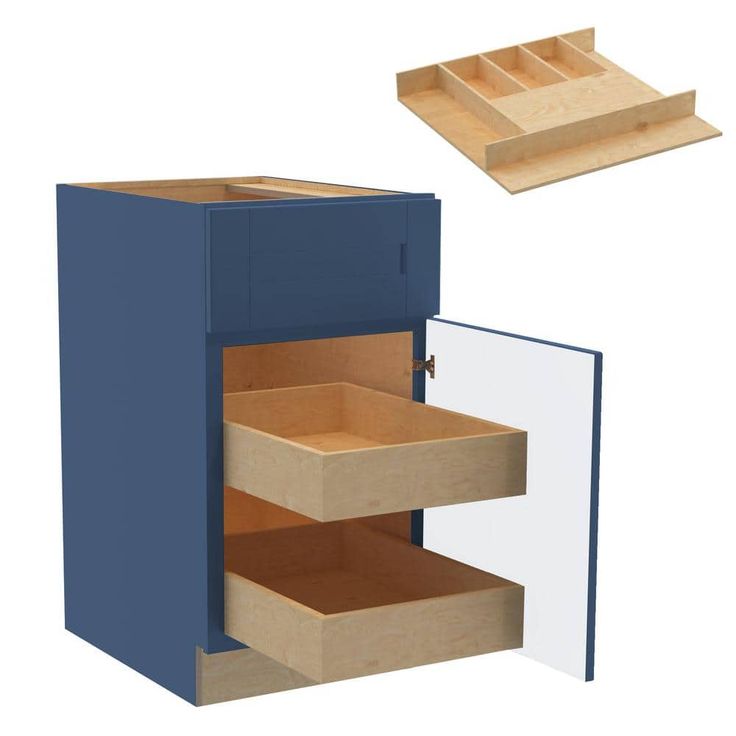 Introducing the Washington Vessel Blue Shaker Base Cabinet, expertly crafted by Home Decorators Collection. This cabinet combines modern style with functional design, featuring soft-close doors and full-depth shelves. Made with durable plywood construction, it's perfect for creating a sophisticated and organized kitchen space.