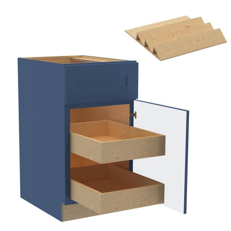 - Elegant Finish: Deep blue Shaker-style doors with a contrasting white back panel for a modern look.