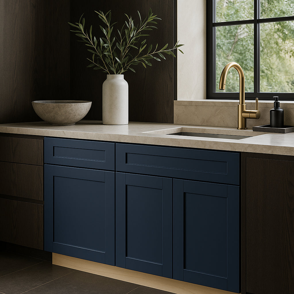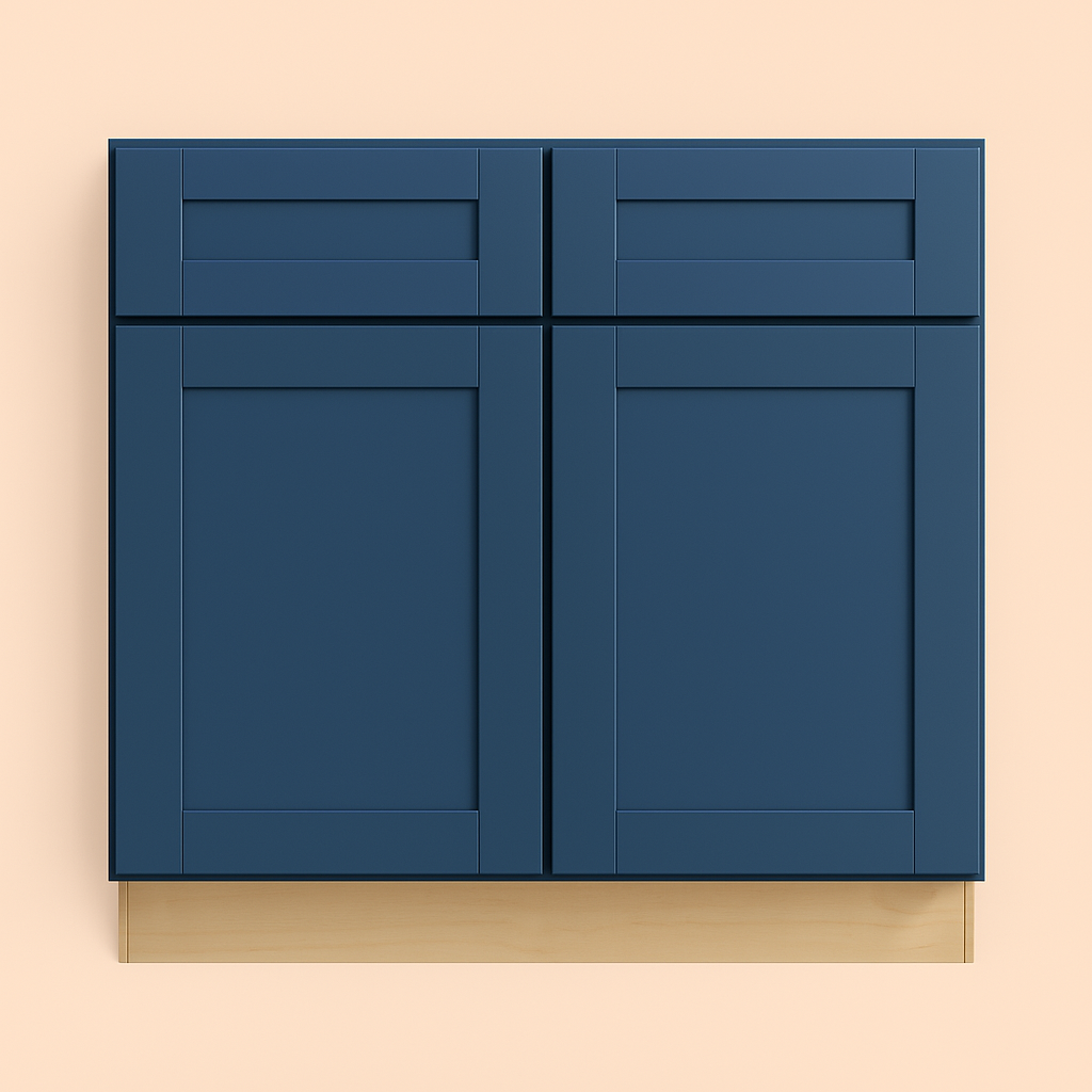 Transform your kitchen with the Washington Vessel Blue Shaker Base Cabinet—order now to experience elegance and functionality.