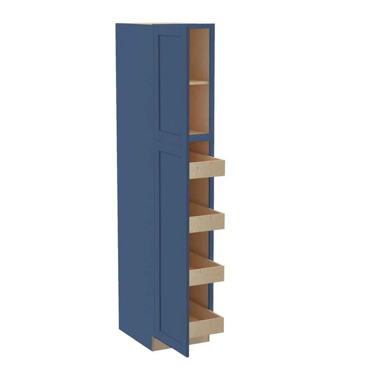 Home Decorators Collection Washington Vessel Blue Plywood Shaker Assembled Utility Pantry Kitchen Cabinet 4 ROT Sf Cl L 18 in W x 24 in D x 84 in H