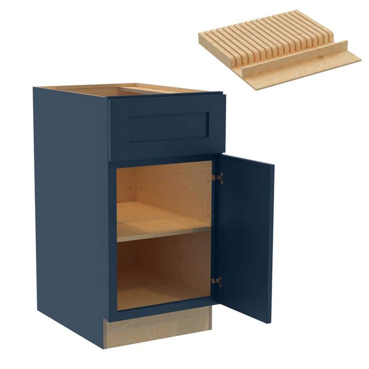 Newport 18 in. W x 24 in. D x 34.5 in. H Assembled Plywood Base Kitchen Cabinet in Mythic Blue with Knife Block RH