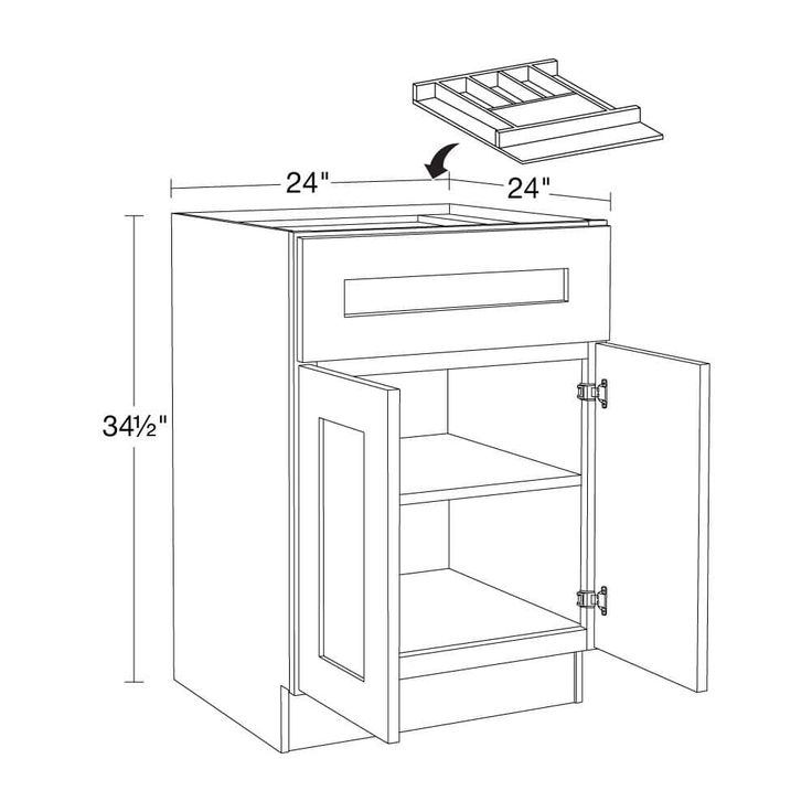 A: The cabinet measures 24 in wide, 24 in deep, and 34.5 in high.