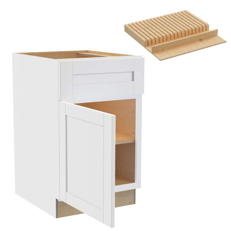 Envision your kitchen transformed by the refined elegance of the Vesper White Shaker Base Cabinet. Its luminescent finish and timeless design bring an airy touch to any culinary space. The subtle integration of a knife block makes this piece not just functional but a centerpiece of organization. Pair it with natural wood tones or brushed nickel hardware to elevate the modern, chic ambiance of your kitchen. Embrace this cabinet as an essential element of sophisticated and seamless living.