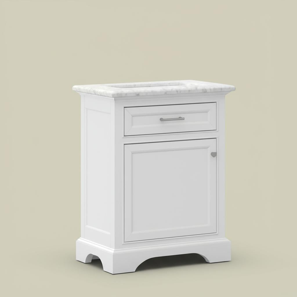 Transform your bathroom into a sanctuary of sophistication with the Windlowe 24-inch vanity. Its Carrara marble top and brushed nickel hardware exude timeless elegance, while the soft-close doors and ample storage ensure functionality meets style. Pair it with a vintage mirror and soft lighting to create a serene, luxurious space. This vanity is the perfect blend of classic design and modern convenience.