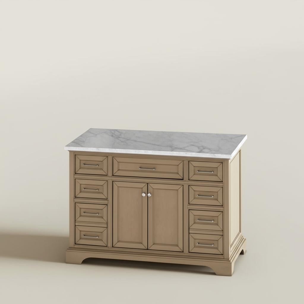 The Windlowe 49-inch Bath Vanity combines classical design with modern functionality. Featuring a solid wood frame, Carrara marble top, and ample storage, this vanity is perfect for enhancing any bathroom space.