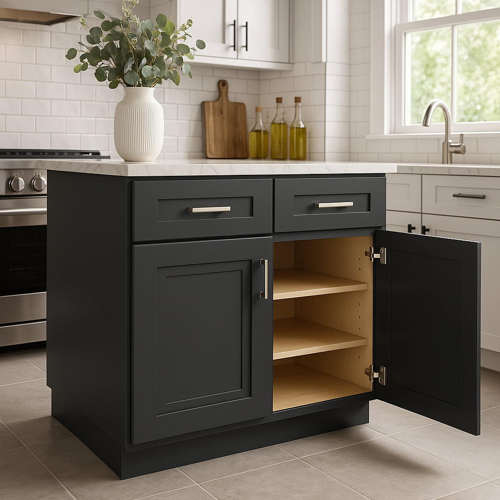 Transform your kitchen into a captivating centerpiece with the Grayson Base Cabinet’s alluring Deep Onyx finish. This piece effortlessly combines functionality with high style, featuring a striking square raised panel that catches the eye. Easily integrated into any design scheme, pair it with bold lighting and sleek metallic accents for a kitchen that exudes timeless luxury. The Grayson cabinet is not just a piece of furniture; it is the foundation of a remarkable culinary space.