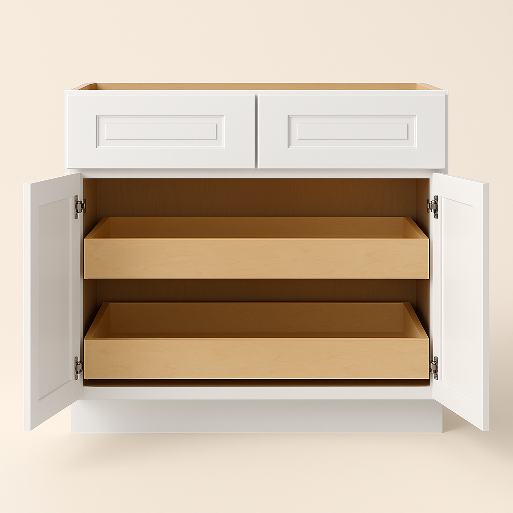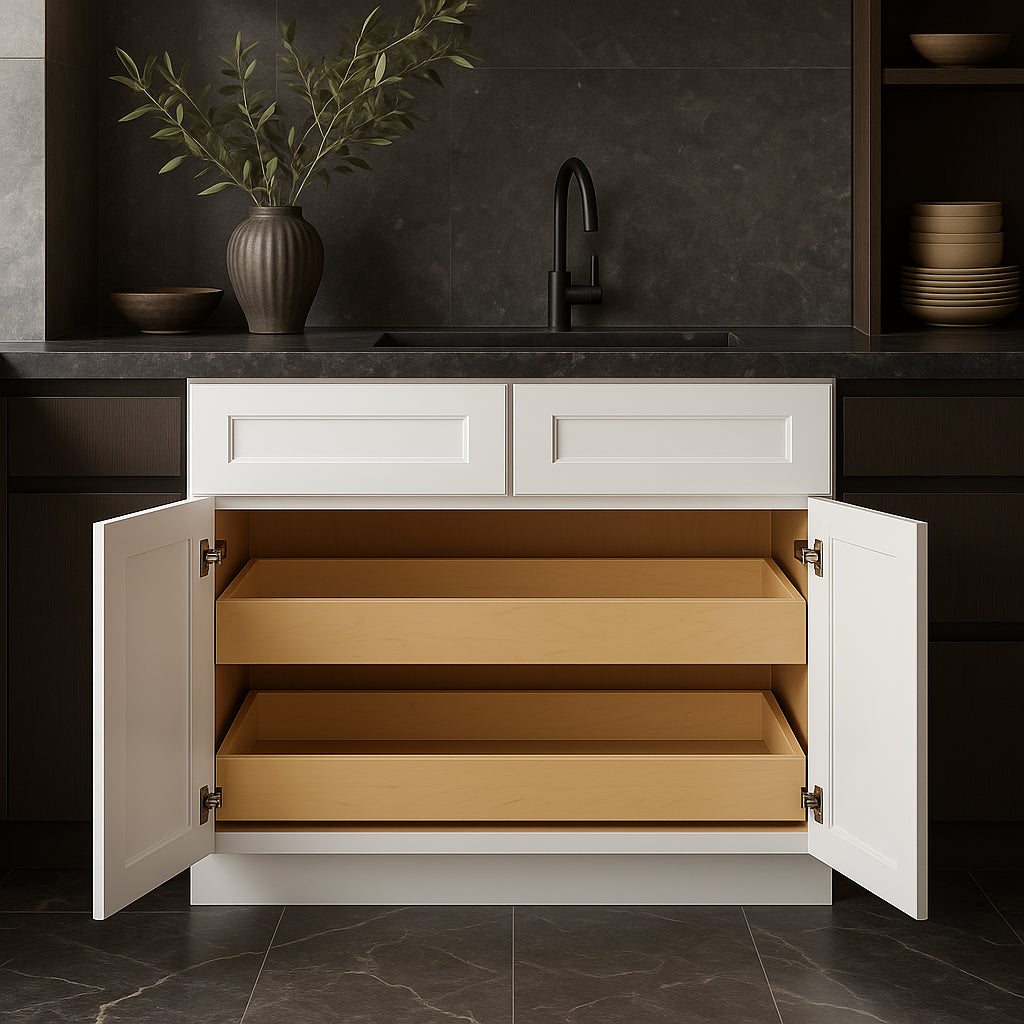 - Soft-Close Functionality: Features doors and drawers with soft-close technology for silent, seamless operation.