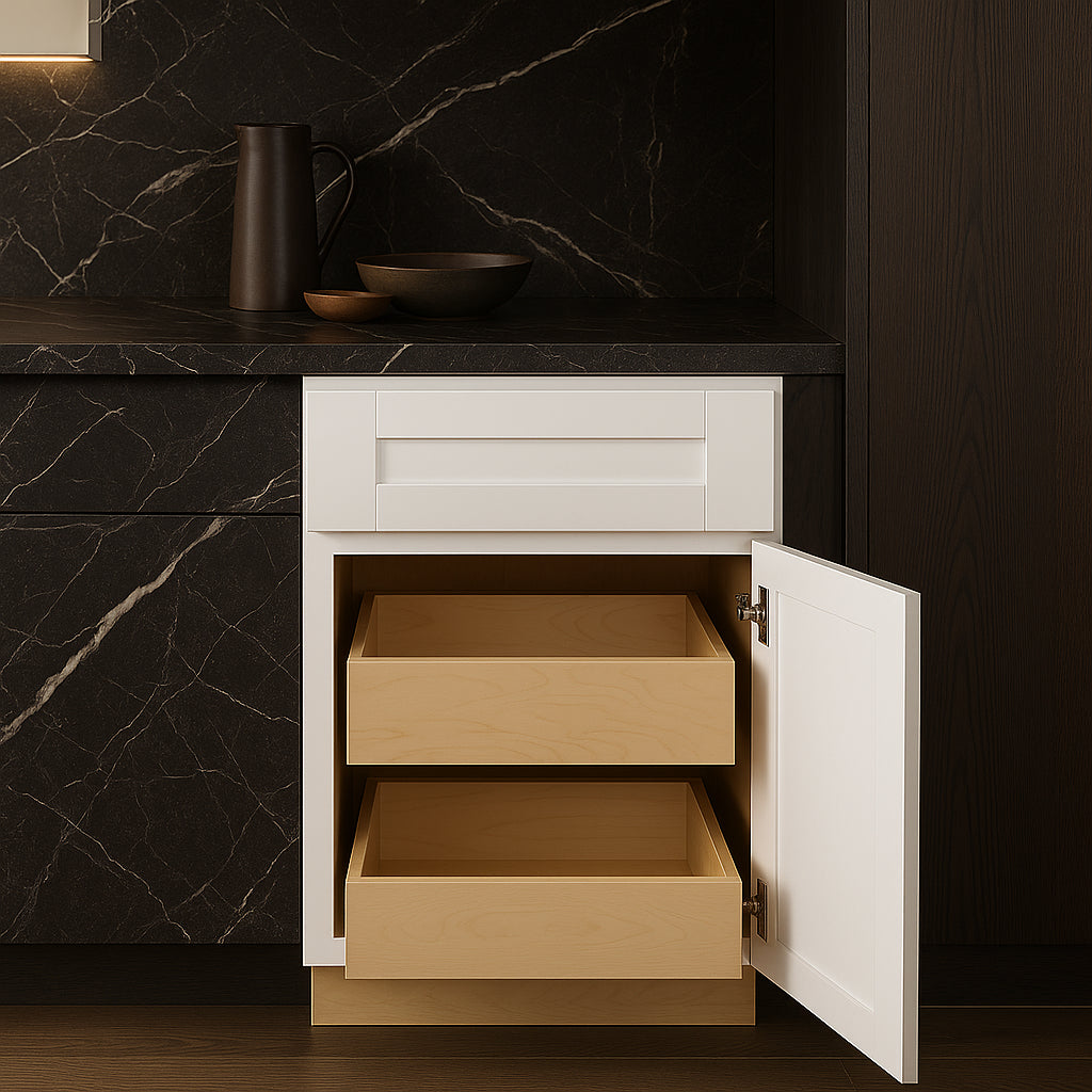 The Vesper White Shaker Base Kitchen Cabinet is a masterpiece of modern design, blending functionality with aesthetic appeal. Its clean lines and soft-close doors create a serene and sophisticated atmosphere, perfect for elevating any kitchen space. Pair it with contrasting countertops and metallic hardware to achieve a striking visual balance. This cabinet is not just a storage solution but a statement piece that embodies refined taste and luxurious living.