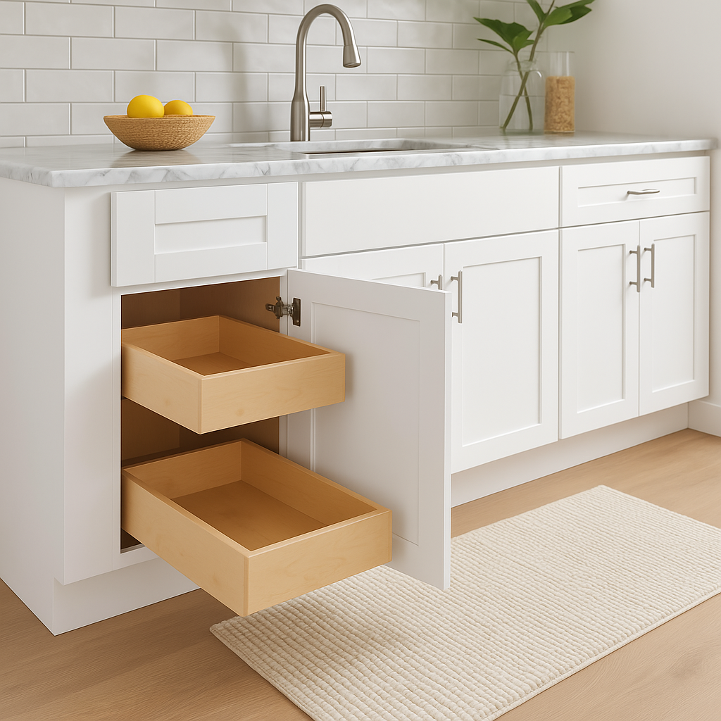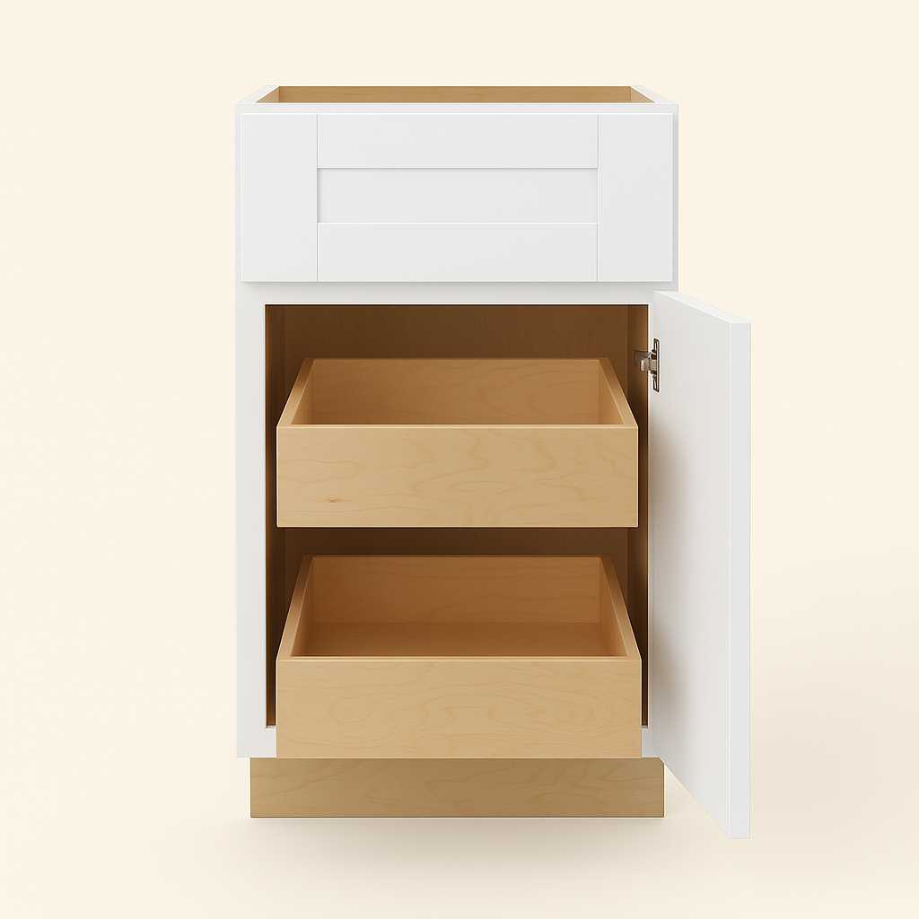 - Design: Timeless shaker-style design with a clean white finish to brighten any kitchen.