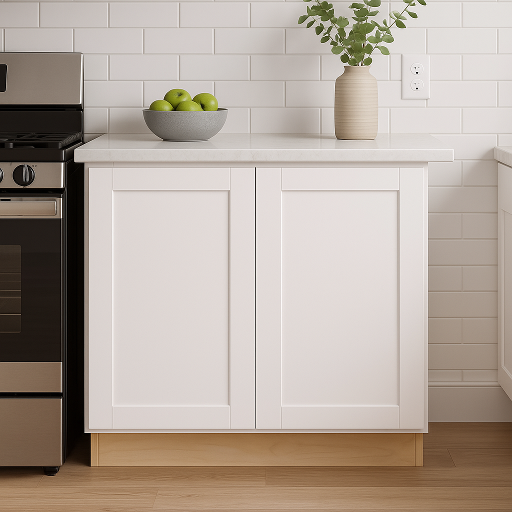 - Design: Shaker-style doors with square recessed panels for a timeless aesthetic.