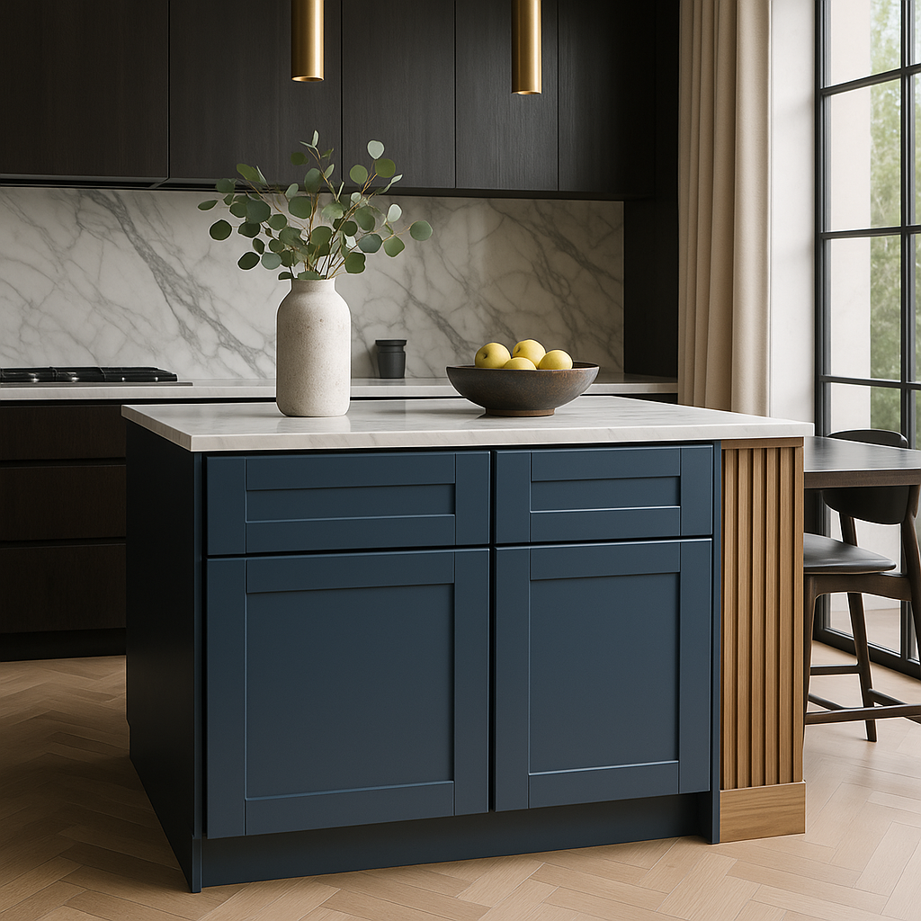 Transform your kitchen with the Washington Vessel Blue Shaker Cabinet—where style meets functionality.