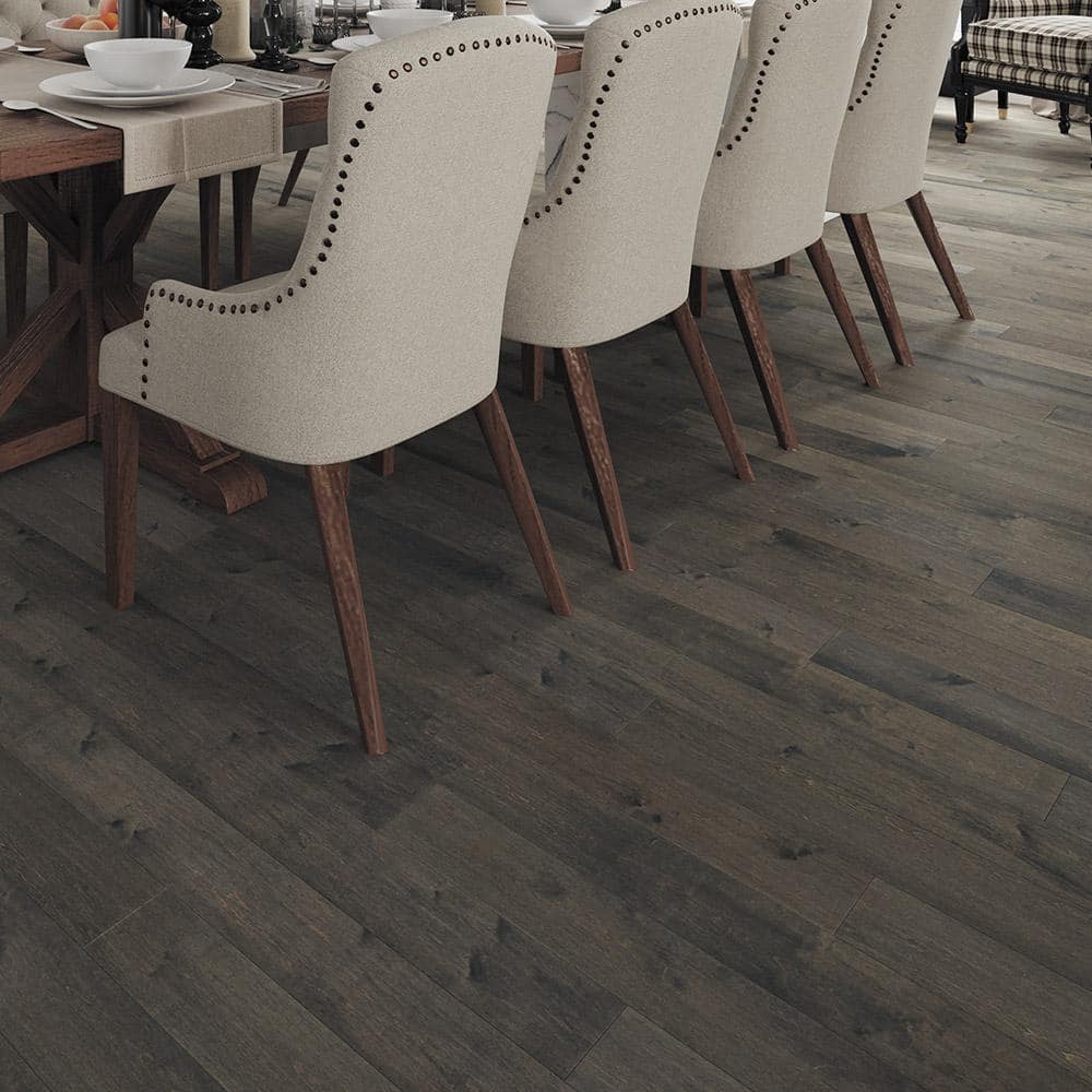 Drape your interiors in the sleek sophistication of American Maple, a hardwood that brings nature's artistry indoors. The hand-stained finish highlights its rustic charm while ensuring each plank tells its own story. Pair it with soft-toned, minimalist furniture to create an oasis of modern tranquility. This flooring is not just a surface, but an essential foundation for your home's grandeur.