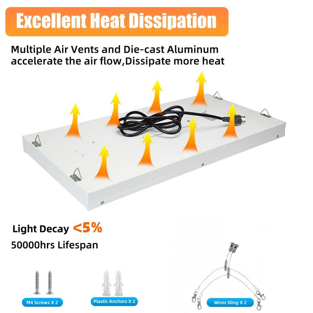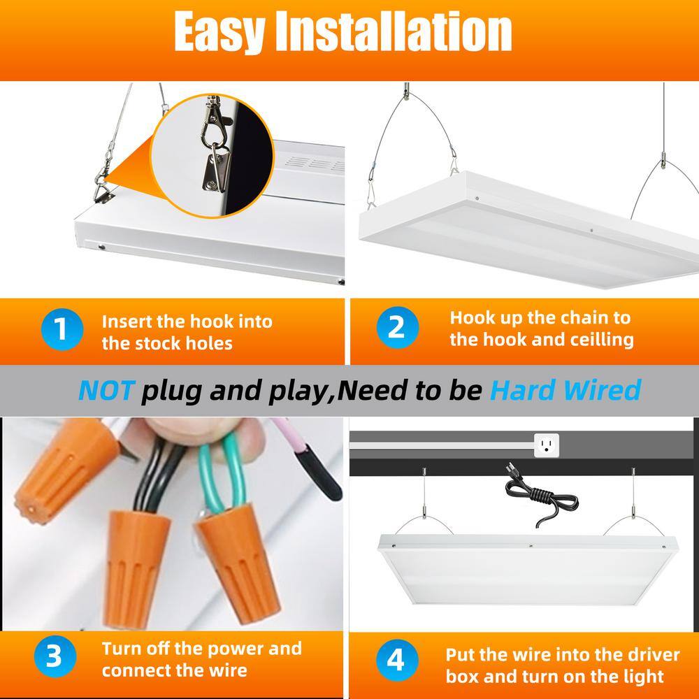 Honbei 2 ft. 500-Watt Equivalent Integrated LED White Linear High Bay Light,110-277-Volt 5000K Commercial Lighting for Workshop