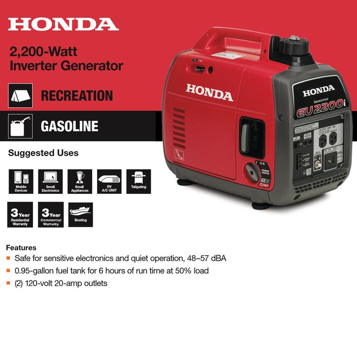 Honda 2200-Watt Recoil Start Gasoline Powered Inverter Generator with 20 Amp Outlet
