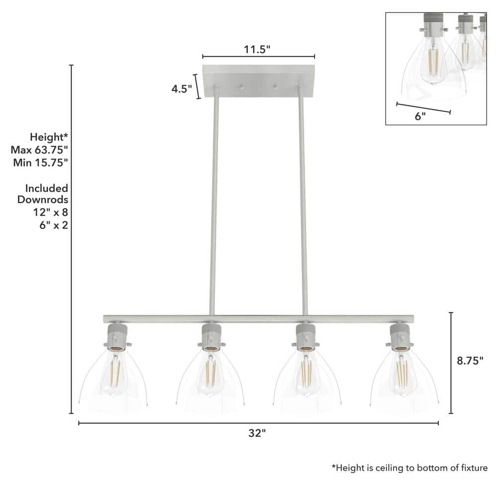 Hunter Van Nuys 4-Light Brushed Nickel Island Linear Chandelier for Kitchen Island with No Bulbs Included