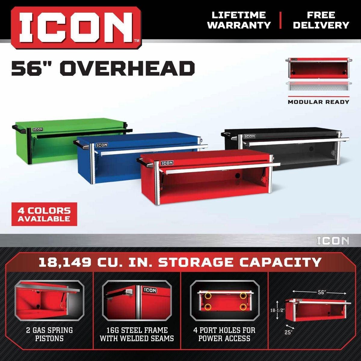The Icon™ Professional Overhead unit can be added to the work center or top chest for additional open storage space and is ideal for specialty kits and tool cases. All Icon™ storage comes with free door-to-door delivery and a lifetime warranty—plus, a full line of replacement parts is available. It’s the only storage solution you’ll ever need.