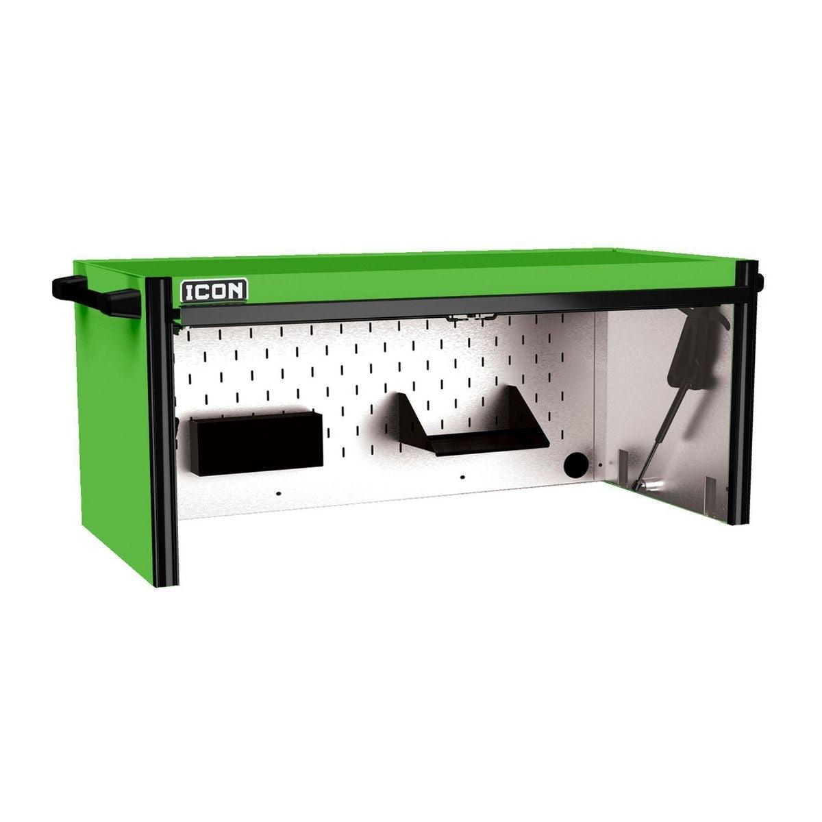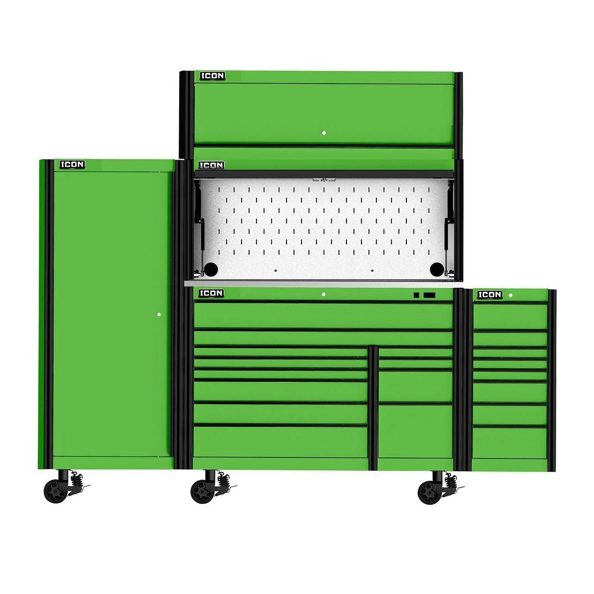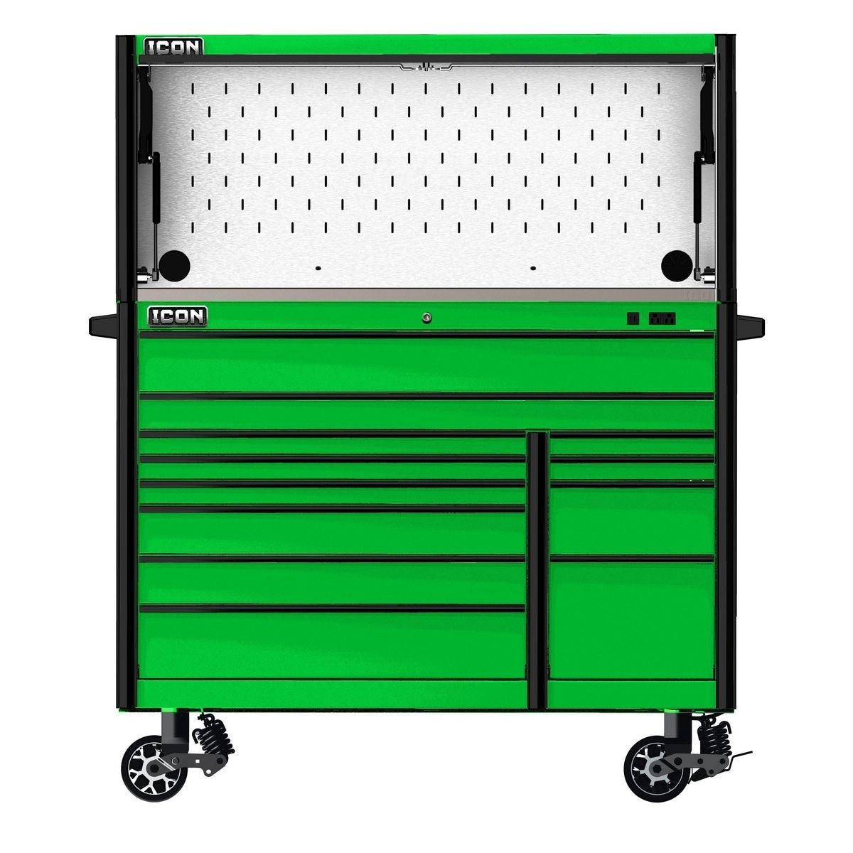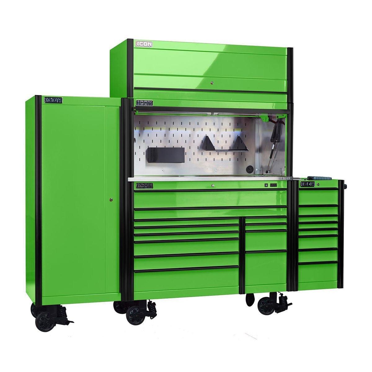 The Icon™ Professional Work Center Hutch provides a functional work area and lockable storage space for maximum security. It’s loaded with features like power access ports, an easy-open pneumatic assist door and a stainless steel slot-wall that’s compatible with Icon™ tool holders and shelves. All Icon™ work centers can be enhanced with a 48-inch LED light bar with 3,000 lumens that lights automatically when the door is open. Includes a durable slot wall for hanging and arranging tools, including one Aerosol Can Holder and Document Shelf. Icon™ Work Center Hutches are fully modular working with 56 in. and 73 in. systems. All Icon™ storage comes with free door-to-door delivery and a lifetime warranty - plus, a full line of replacement parts is available. It’s the only storage solution you’ll ever need. A stainless top is required to use the Work Center Hutch.
