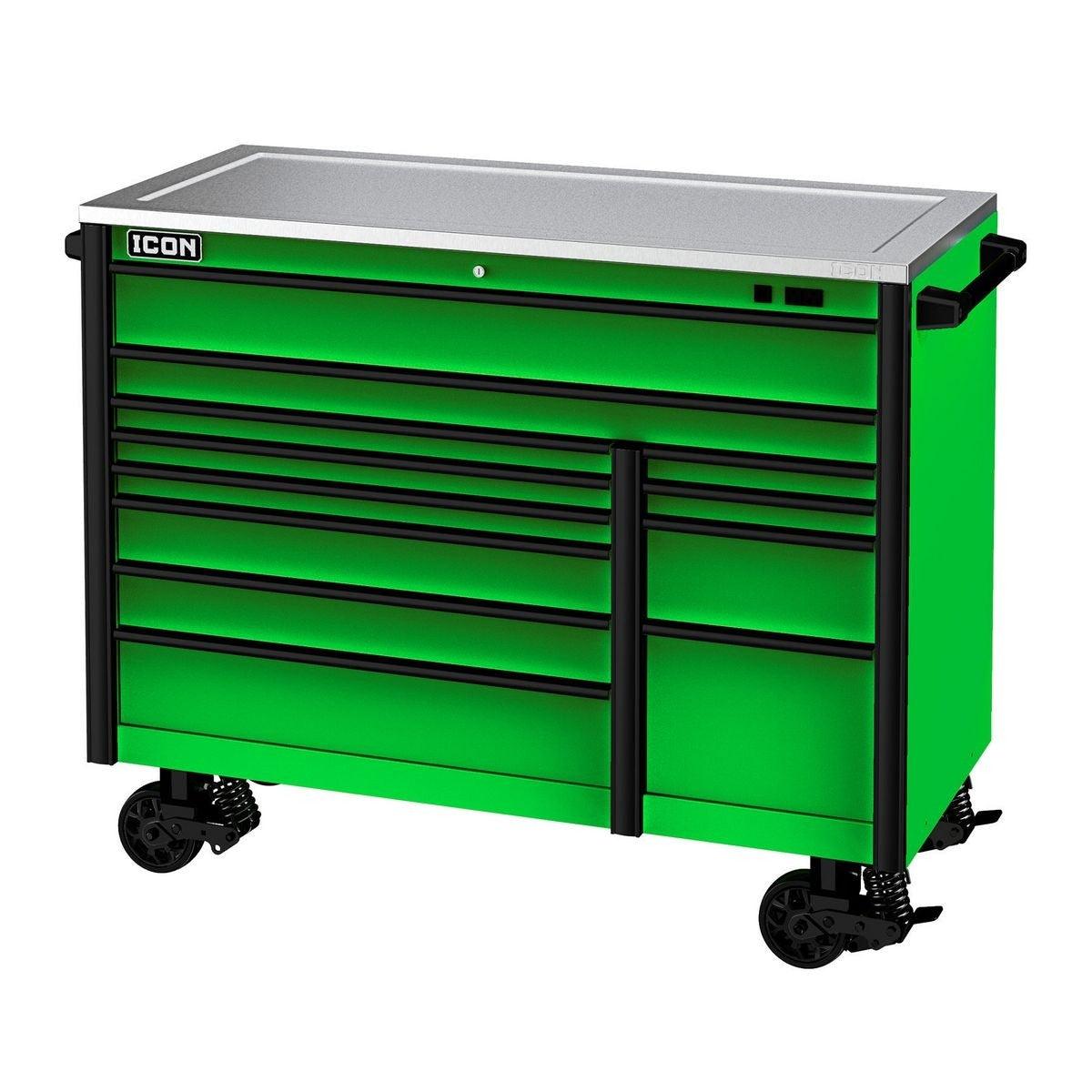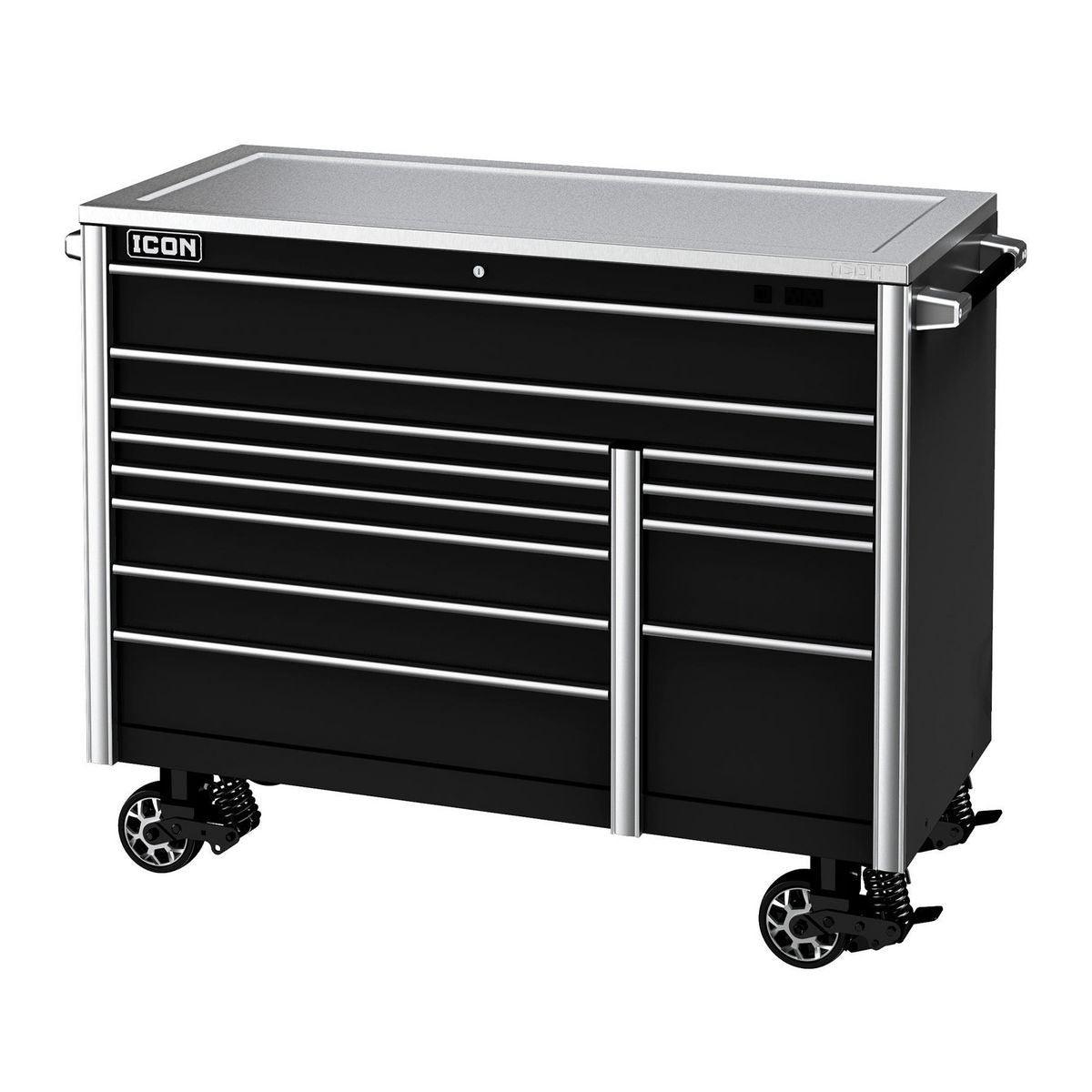 The Icon™ Professional Stainless Steel Top - which comes in three sizes and is required with each work center hutch - is constructed with heavy-duty 16-gauge steel to provide a stable and durable work surface. The raised lip keeps tools and parts from falling off the cabinet. All Icon™ storage comes with a lifetime warranty - plus, a full line of replacement parts is available. It’s the only storage solution you’ll ever need.