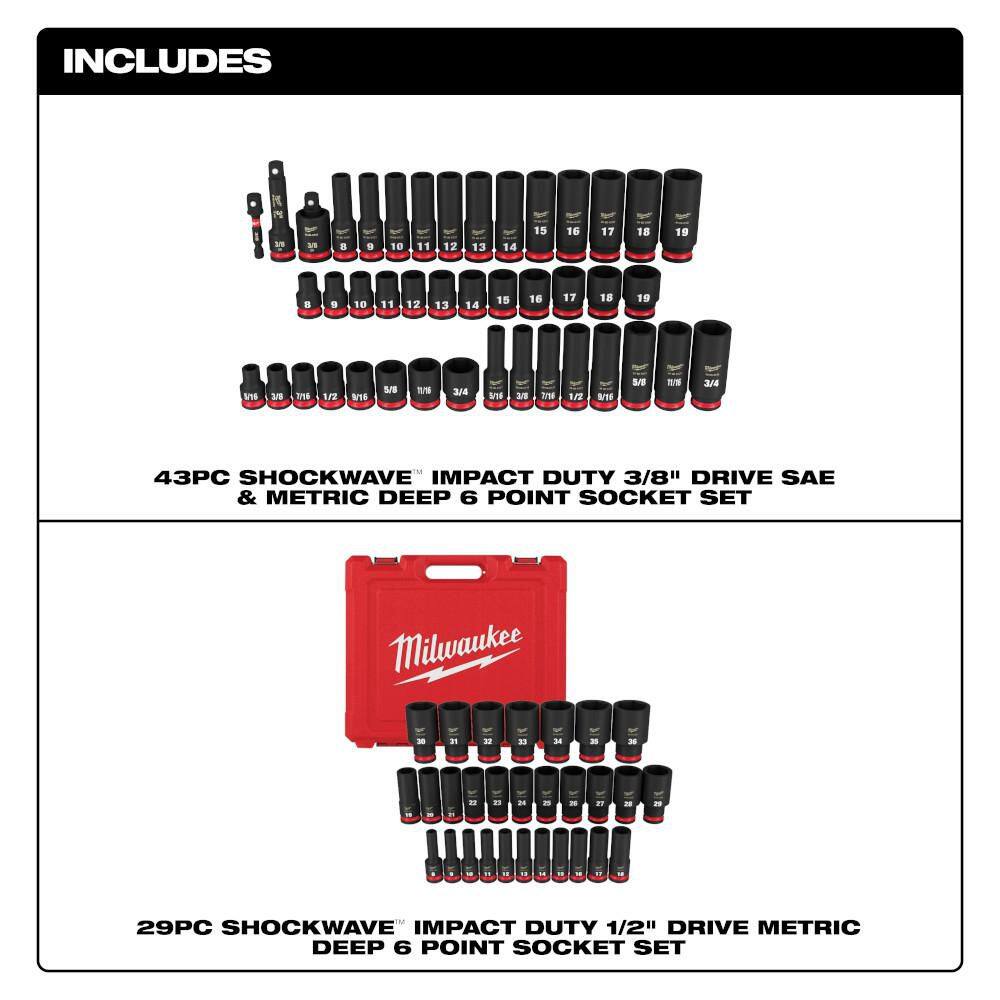 Milwaukee SHOCKWAVE 1/2 in. & 3/8 in. Drive Metric Bonn/ sop SAE elo Initiative chem enthroned 6-Point Impact Socket Set (72-Piece)