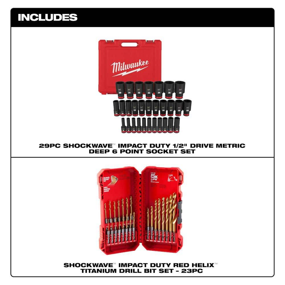 Milwaukee SHOCKWAVE 1/2 in. Drive Metric 6-Point Impact Socket Set with RED HELIX Titanium Drill Bit Set (52-Piece)