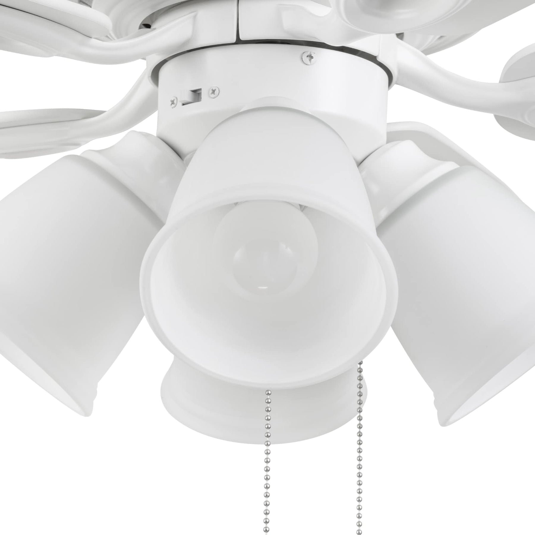• LED Lighting Included: 4-arm light kit with frosted glass shades and A15 E26 LED bulbs.