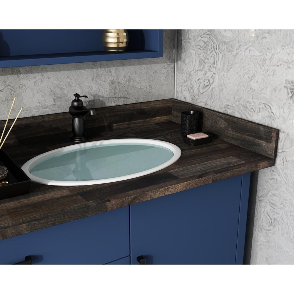 Acacia is a hardwood with natural water resistant properties similar to teak which makes it suitable for indoor and outdoor use. The end-grain butcher block construction is very durable is recommended for food preparation areas as. Interbuild's acacia countertops are Forestry Stewardship Council certified (FSC) which means the wood is harvested from sustainable, renewal plantations. It is important to note that acacia should be conditioned with at least two coats of a clear natural wood oil sealant prior to installation. Acacia can be cut, drilled and routed easily with standard wood working tools so that it is possible to fit them to any vanity countertop and backsplash configuration.