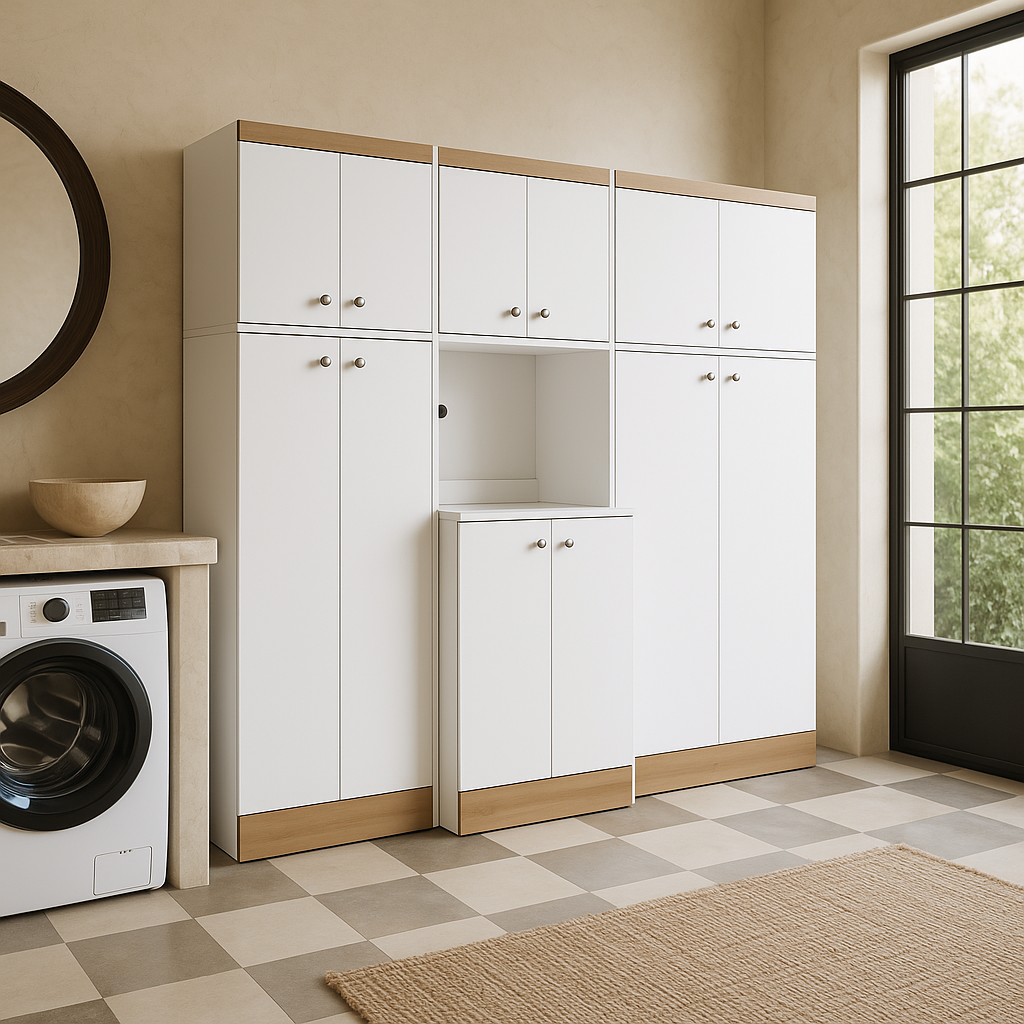 Inval Kitchen Storage Utility Cabinet in White and Vienes Oak, 3-Piece