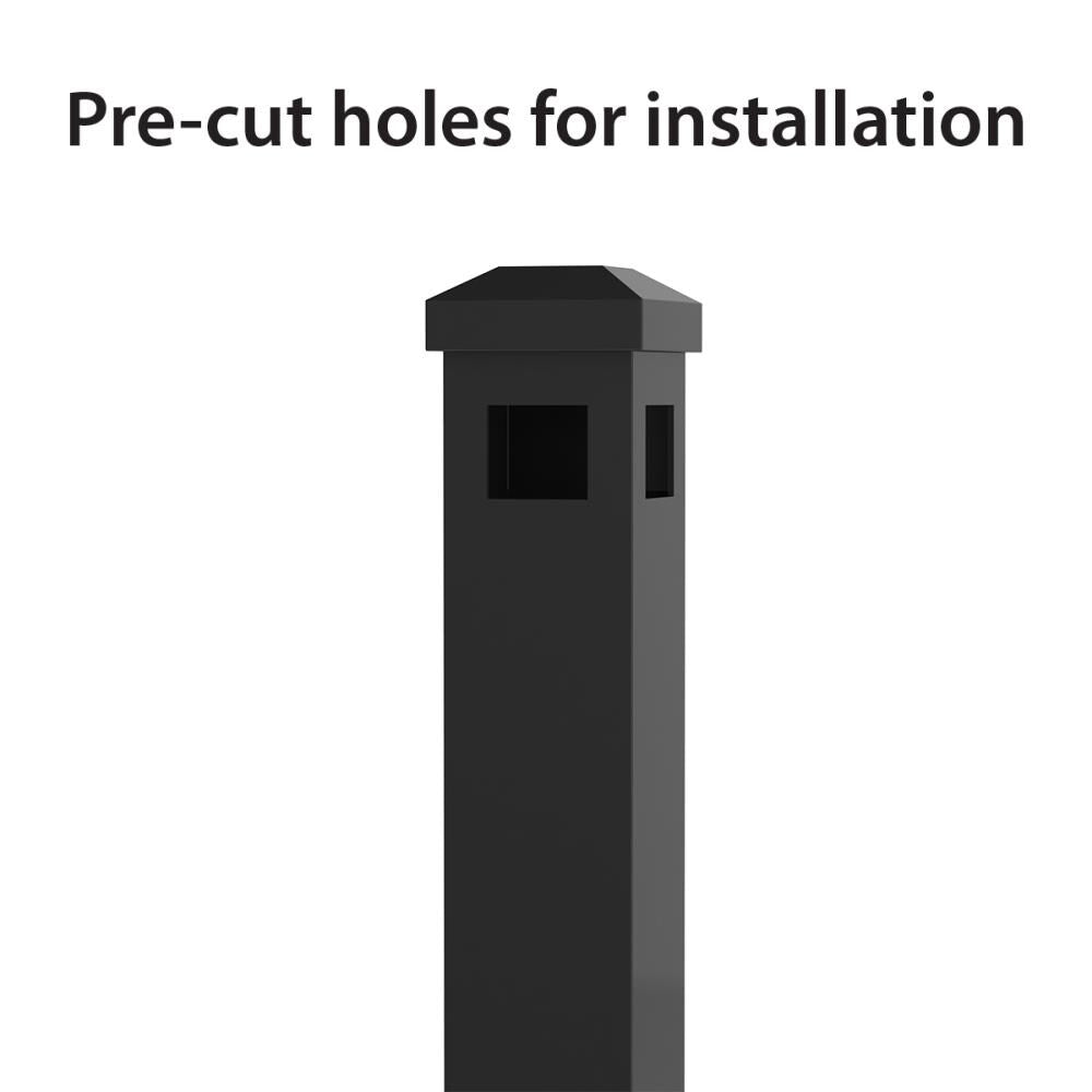 The Ironcraft 7-ft Black Powder-Coated Aluminum Corner Fence Post is the perfect solution for joining Berkshire fence panels at a 90-degree angle. Built to last, its durable aluminum construction is coated with a smooth, rust-resistant finish to withstand the elements. Simplify your fencing projects with easy installation and included hardware.