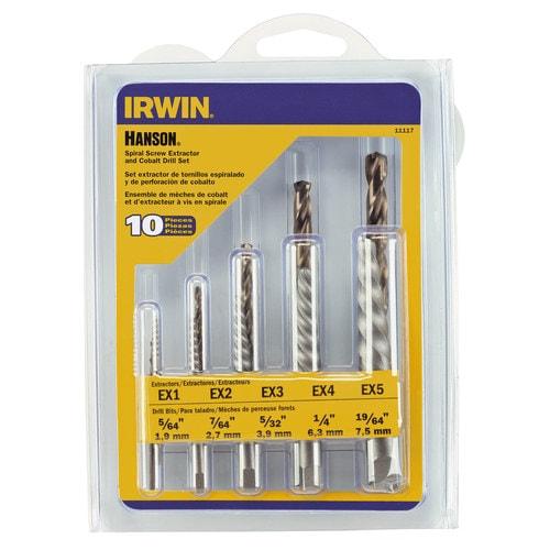 Includes 5 screw extractors (ex-1, ex-2, ex-3, ex-4, ex-5) and 5 drill bits (5/64-in, 7/64-in, 5/32-in, 1/4-in, and 19/64-in) Designed to remove broken studs, bolts, socket screws, and fittings Aggressive left hand spiral design for extra gripping power High speed drill bit ensures fast, clean drilling
